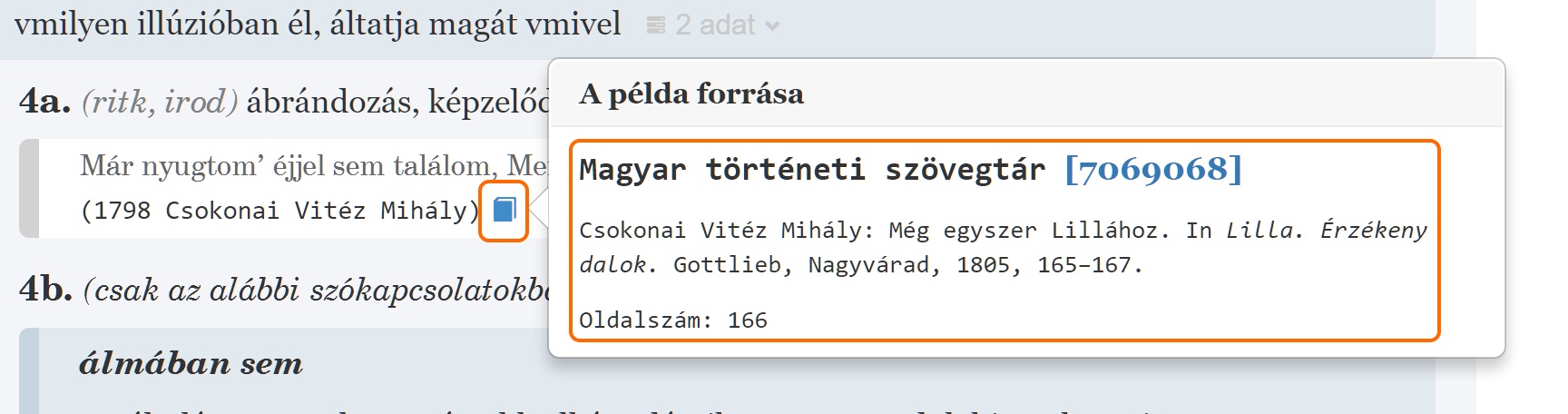 A felbukkanó buborék felső sorában található forrásazonosító kódra kattintva új böngészőablak nyílik, amelyben a forrásadatbázis lekérdezőfelületén is megtekinthetjük a forrás bibliográfiai adatait.